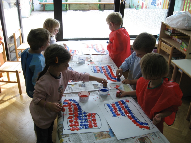 Naučili smo se deklamacijo o Pedenjpedu Vrtnarju, pesem o Muci Copatarici, ustvarjali z barvami in se veliko igrali. Veliko časa preživimo zunaj in uživamo v lepem vremenu.