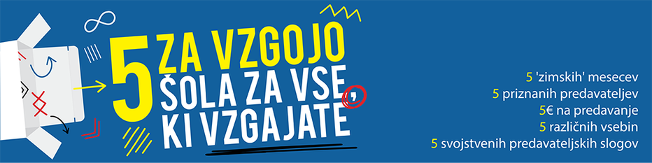 V e-Centru so pripravili "5 za vzgojo - šola za vse, ki vzgajate". Da se zamislimo, da se izprašamo, se pogovorimo in ukrepamo. Dve zanimivi predavanji so že mimo, rezervirate si lahko naslednje tri.