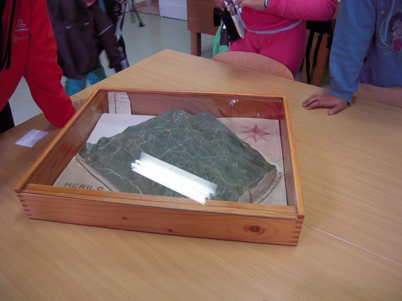 seboj primerjali. Nato smo se vrnili v Lokve, kjer smo si ogledali naravoslovno učilnico. V njej so prikazane prave živalske dlake in iztrebki, stopinje živali in seveda vrste dreves in listov ter tudi gozdni škodljivci. Sledil je ogled stare osnovne šole, ki je z delovanje prenehala že leta 1984. Tam smo videli reliefe Trnovske in Banjške planote, Soške doline ipd.