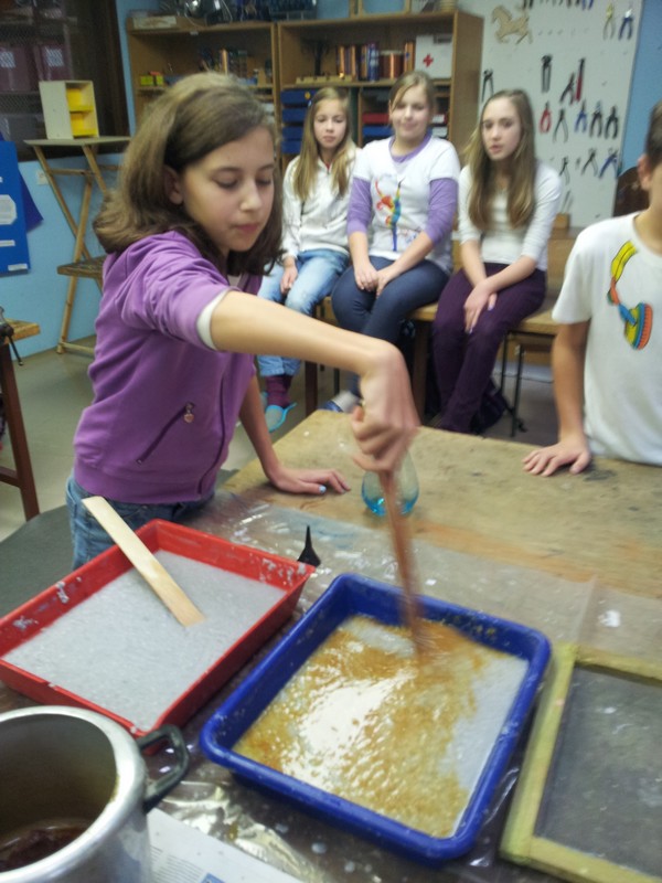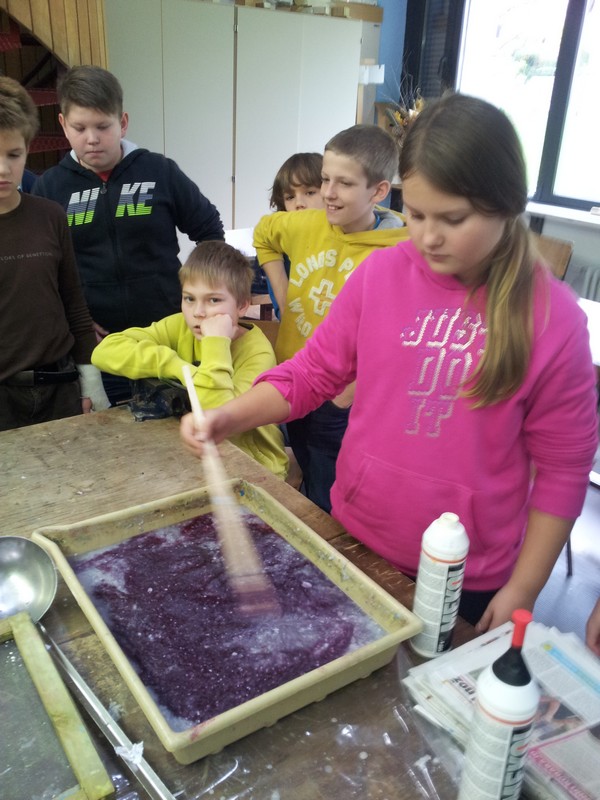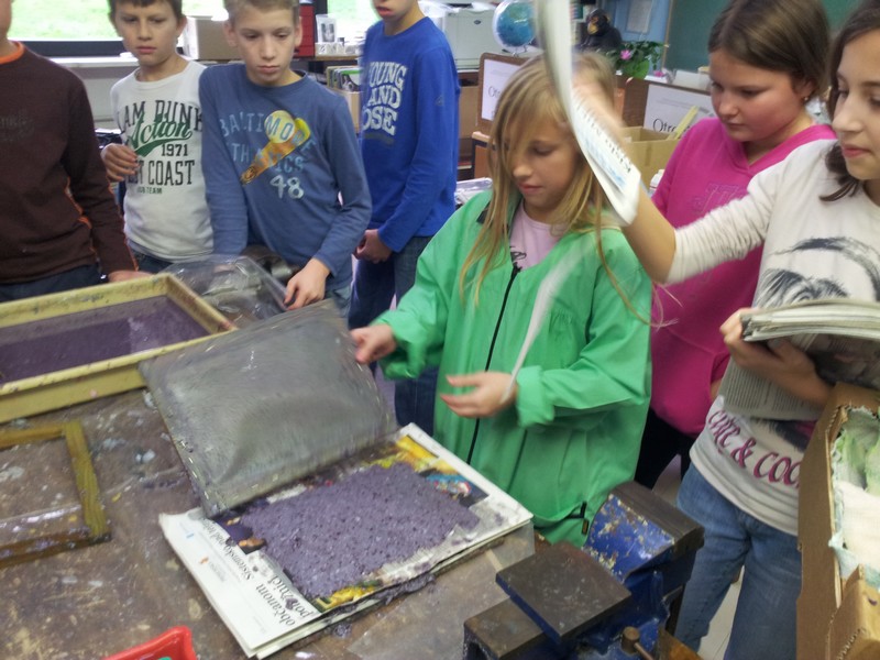 Prejšnji teden smo v sklopu medpredmetne povezave Naravosovja in Tehnike-tehnologije izvedli skupne delavnice. S šestošolci smo predelali star papir in iz njega po določenem postopku izdelali ročno izdelan papir, ki ga bomo uporabili za voščilnice in škatlice. Pri pripravi umetnih barvil sta sodelovali tudi učiteljici navoslovja in učencem prikazali, kako lahko papriju dodamo barve, lepila  in dišave. Učenci so z zanimanjem sodelovali in se pri tem veliko naučili.
