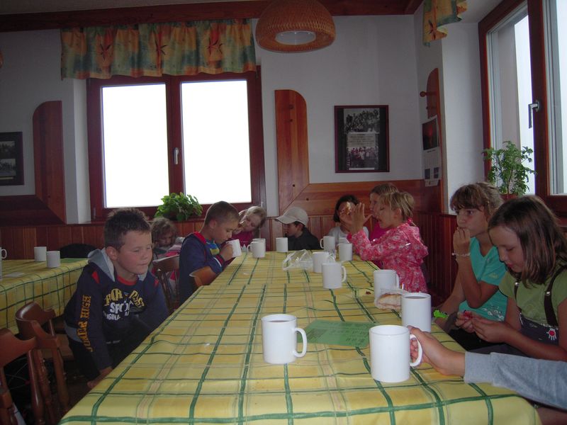 Po treh urah hoje, smo končno prišli na vrh. V koči smo malicali, popili topel čaj in se posladkali z bonboni. Ko smo se odpočili, nas je vodnik Matej fotografiral. Nato smo se odpravili po drugi poti v dolino. Nekaj časa smo hodili, potem pa so nas začele boleti noge. Prišli smo v dolino in se vkrcali na avtobus.
