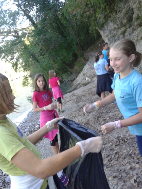 Nato so nas poklicali na čistilno akcijo. Dobili smo vreče in rokavice ter se odpravili čistit pot, ki pelje ob Soči do železniškega mostu. Ob poti je bilo velikansko divje odlagališče. Polovica skupine se je tam zadržala še nekaj časa, ostali so pa odšli naprej. Čez nekaj časa smo se spet srečali, skupaj odšli proti Kajakaškemu centru Solkan in pojedli kosilo.