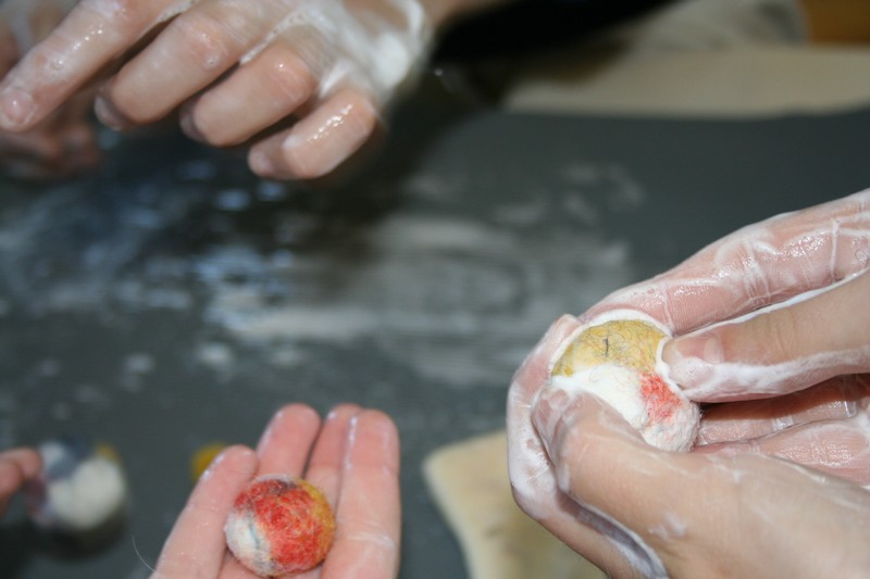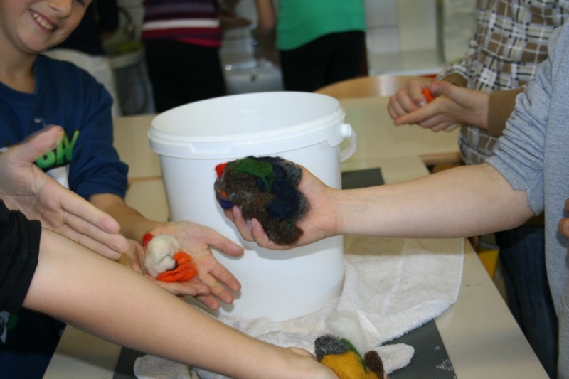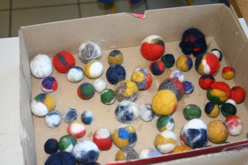 IMG_0978V lanskem decembru smo se nekateri učenci iz  9. razreda, ki smo vključeni v vzporedni program, spoznali s tehniko polstenja. Učiteljica Matejka Černe nam je pokazala izdelke iz posebne volne za polstenje. Preko izdelkov nam je razložila postopek polstenja, nato pa smo se izkusili v tej tehniki še učenci. Vsak je dobil nekaj barvne volne, podlago, gobico in iglo za polstenje.  V petih šolskih urah so nastali različni izdelki (prtički, kroglice za novoletno drevo, različni okraski...), ki so bili naprodaj na novoletnem bazarju naše šole.