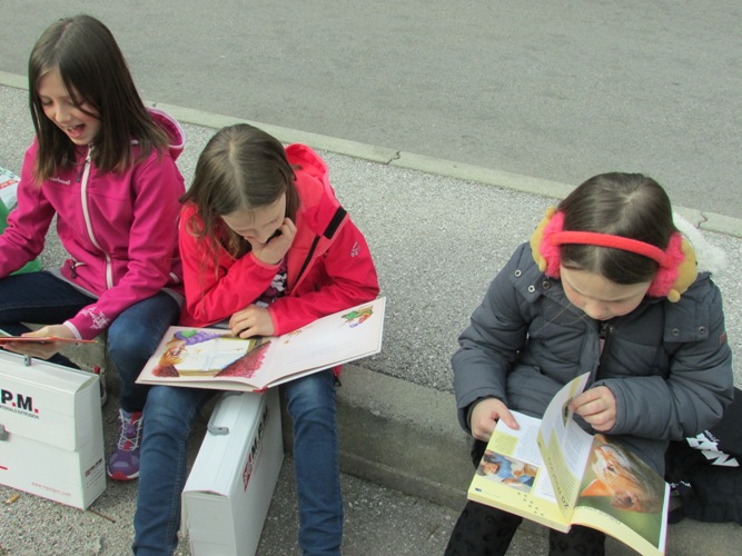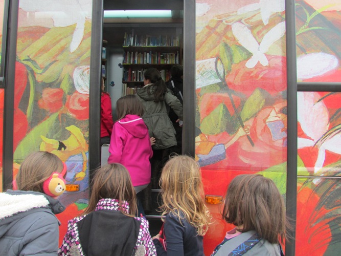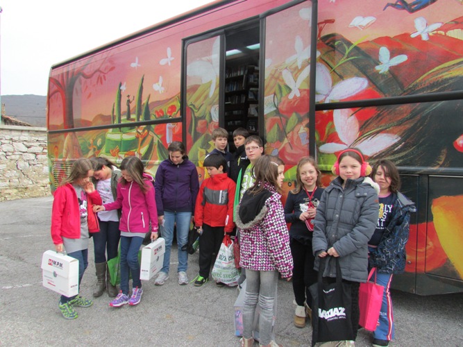 V potujočo knjižnico hodimo učenci 3., 4. in 5. razreda enkrat na mesec ob ponedeljkih. Potujoča knjižnica nas pričaka na parkirišču pri trgovini. Tam si izposodimo različne knjige, filme, risanke in drugo...