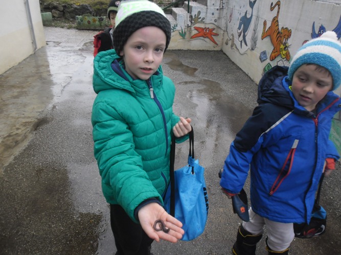 Na poti iz telovadnice so učenci na pločniku zagledali dva deževnika, pred vhodnimi vrati pa še enega. Najpogumnejši so jih prijeli v roke in opazovali njihovo značilno kolobarjasto telo. »Le kaj jih je privabilo na plan?« so se spraševali. Morda deževen dan, kajti deževalo je vse jutro.