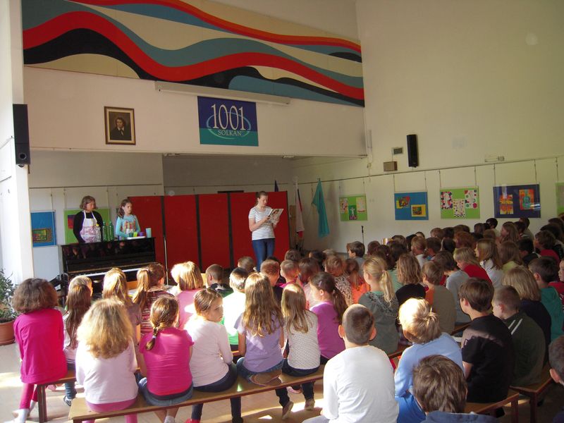 Slovenije s pomočjo sponzorjev pripravlja darilne knjige za zlate bralke in zlate bralce. Teh je letos na naši šoli 38.Prostočasno branje je dobra spodbuda za vseživljenjsko branje, za višjo bralno pismenost in boljšo bralno kondicijo otrok in mladostnikov.Bralna priznanja je na naši šoli letos prejelo 387 učencev. To predstavlja kar 71 % vseh učencev.Iskrene čestitke! Letos je prvič, ko je darilna knjiga enaka za zlate bralce in prvošolce, in sicer slikanica Damijana Stepančiča s Prešernovo Zdravljico, ki je prejela nagrado Kristine Brenkove za izvirno slovensko slikanico 2013.Delo je namenjeno bralcem vseh starosti. Prešernova Zdravljica namreč sodi v kanon slovenske književnosti. Sedma kitica je izbrana za slovensko himno, ilustrator Stepančič pa z ilustracijami vzpostavlja poseben, spoštljiv odnos do naše kulturne zgodovine. Ob Prešernu so namreč na slikah upodobljeni Slovenci, ki so močno zaznamovali zgodovinski, znanstveni, literarni in kulturni prostor in čas, v katerem so delovali, njihovo delo pa je močno vplivalo tudi na nas Tudi naš letošnji gost, Andrej Rozman Roza: pesnik, pisatelj,dramatik, igralec, prevajalec…, ki piše parodične in komične pesmi, pravljice in gledališke komedije za otroke in odrasle, predeluje klasična besedila za druge medije, jih prestavlja v sodobnost ali preprosto, prevaja.