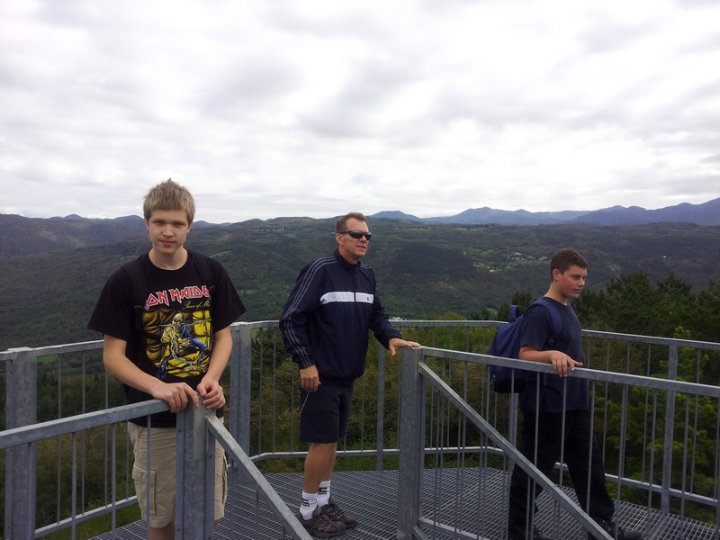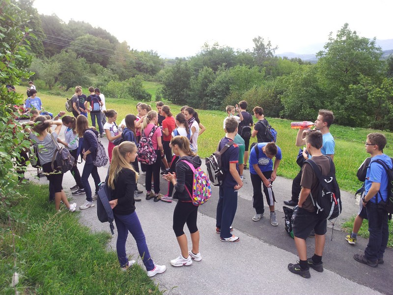 V petek, 20.9.2013 smo se učenci 9-ih razredov odpravili na Škabrijel in sicer čez vratca. Dan je bil rahlo oblačen. Ravno prav, da nam sonce ni svetilo v obraz. S pohodom smo začeli ob 8:00 izpred šole. Najprej smo se odpravili proti Kekcu. Ko smo prišli po vrh smo zavili proti vasi Pod Škabrijelom. Nato smo še nekaj časa hodili po cesti, dokler nismo prišli do starega pašnika kjer smo pomalicali. Še nekaj metrov po glavni cesti in zavili smo po strmi poti navzgor po bivših strelskih jarkih. Pot je bila ozka in na trenutke je drselo. Sčasoma nismo več lazili po skalah. Pot se je začela položno vleči proti vrhu. Tam smo se srečali z 8. razredi, ki so se ravno odpravljali v dolino. Na vrhu je bil razgled prečudovit. Lahko smo videli celo morje. V manjših skupinicah smo hodili na stolp. Če si dobro pogledal, je bilo možno, da si celo opazil svojo hišo v dolini. Malo smo se še posladkali in se odpravili v dolino. Na Kekcu smo še malo postali. V šolo pa smo se vrnili okoli 13.00.
