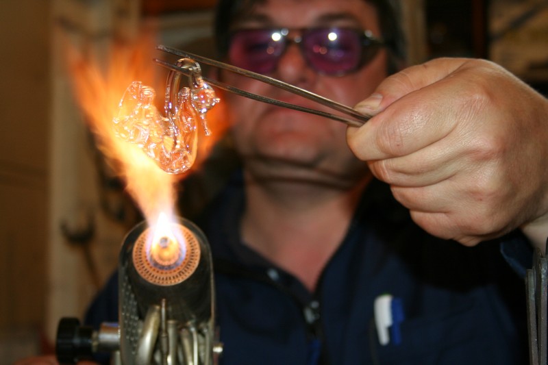 Nato smo se udeležili kratke predstavitve laboratorijskega steklopihaštva, katerega nam ga je predstavil steklopihač,