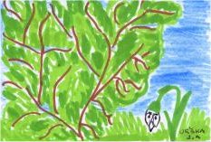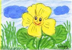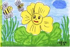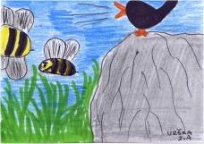 Na majhnem griču je stalo veliko mogočno drevo. Pod velikim drevesom je bila majhna skala. Pod malo skalo sta rasla veliki zvonček in majhna vijolica. Mala čebelica je obiskala velikega zvončka. Popila je veliko nektarja in le malo ga je odnesla domov.