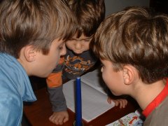 Pravila: Zmaga tisti, ki upihne svečo iz večje