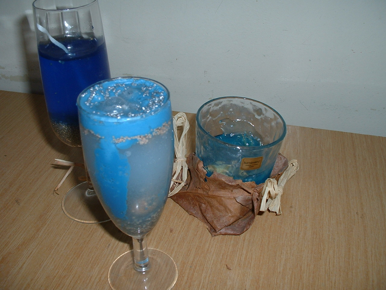 ovijemo stenj. Previdno vlijemo tekoči vosek v plastični