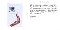 from grade 4 drew their favourite toys, scanned them and typed describtions of them. Here