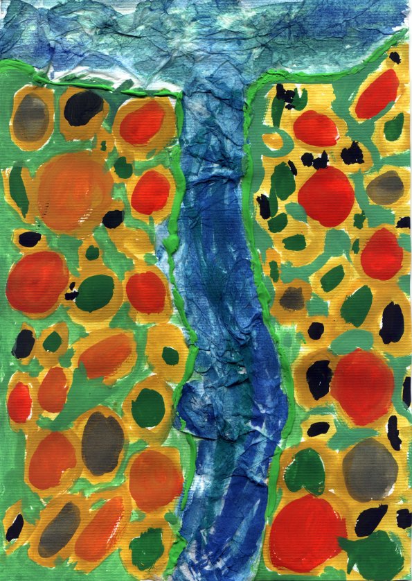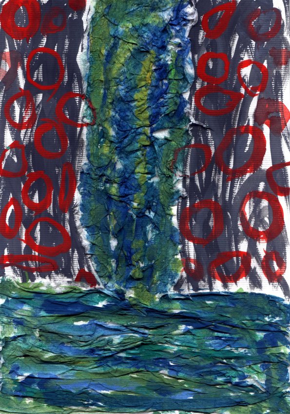risalni list, tempera barvice lepilo in papirnate robčke.