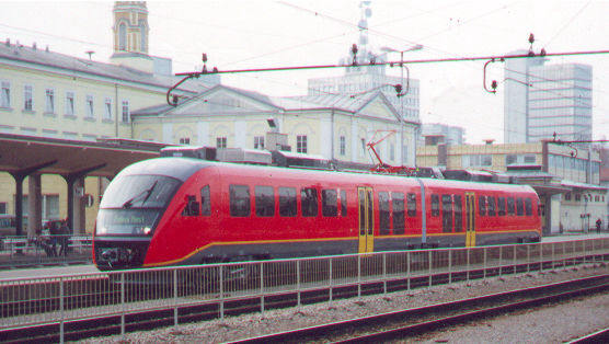 zamenjal stare, že močno uničene potniške vlake. Na peronu zadaj pa so stali zelen