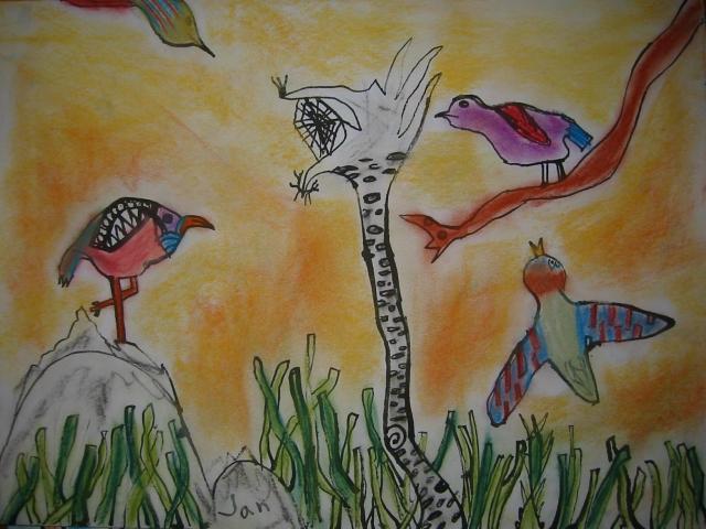 slike četrtošolcev OŠ Ledina, Ljubljana z razstave Ptiči
