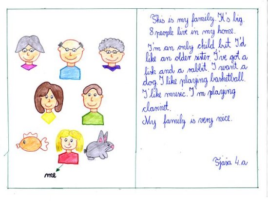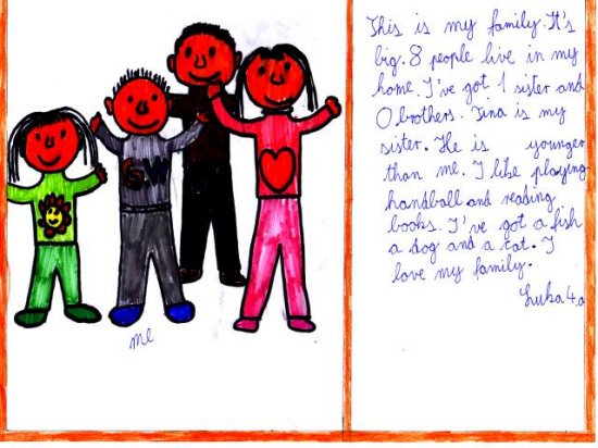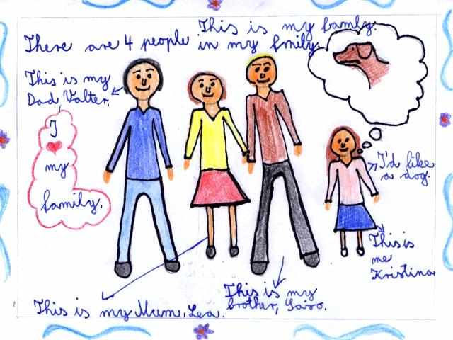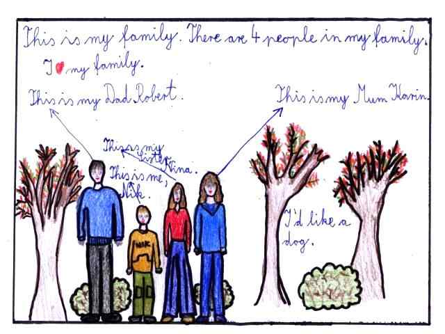| Here are students' texts and artworks about families, friends and themselves. | |||