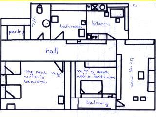 FLAT I live in a block of flats on the 7th floor. Our flat is very big. There are lot of rooms in it. We have three bedrooms, a living room with a balcony, a kitchen, a toilet, a bathroom, a pantry and a hall. We have a lot of flowers in the living room and on the balcony because we all like them very much. We have a lovely sight of Nova Gorica, too. I like our flat because I feel comfortable there. Lea, 6.b