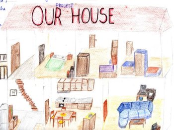 This is our house. My address is Ravnica 33. Our house has got six rooms. There are three rooms downstairs: the kitchen, the living room and the bathroom. Upstairs we have got three rooms too. These rooms are all bedrooms. My brother Matija has got one room and my parents have got one. Upstairs there is my bedroom too. I sleep there and I do my homework, too. I often listen to the music there. You can see a bathroom next to the bedroom. We have a shower here, we brush our teeth and wash. In the kitchen we have got a table and four chairs and other kitchens furniture we have dinners there. In the living room there is a TV, a computer, a desk and a couch. I like my home very much. Lea, 6C |