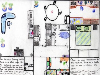 | Here Sara presents her home in writing and drawing. | ||
