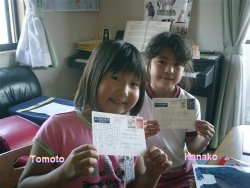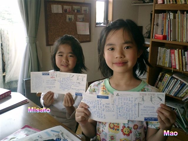 First we took pictures of us and teachers exchanged them with names on them to see who is who via e-mail. Teachers made a list of pairs and later we wrote postcards to our new friends. here are the photos of us all. Our Japanes friends: