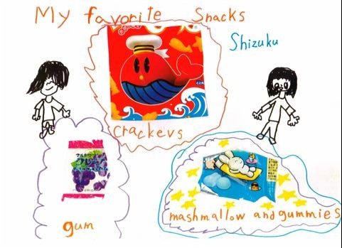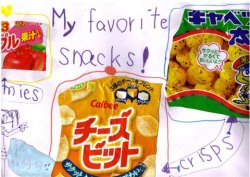 Here are snaks that our friends from Japan eat. Yamiiii.!!! (click on pictures to view them bigger) Kaede Mariko Kono Shizucu Yuta