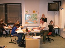 Tiistilän koulu school is quite big with a total of about 358 pupils from 6-12 years of age and is situated in a very nice and peaceful area. The Finnish love bright colours which can be seen throughout the whole school. Even the lights are turned on more or less all day. In the middle of the school there is a special 'green' area surrounded by glass and without a roof which is dedicated to special presentations and performances. You can see how they have let nature into their world.