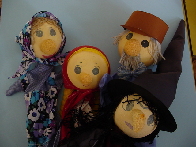Košček spužve je služil lutki za nos. Različni motivi lutk