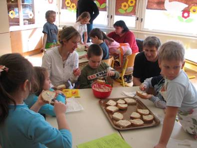 Učenci 2. b razreda smo skupaj s starši pripravili zdravo malico – skutni namaz.
