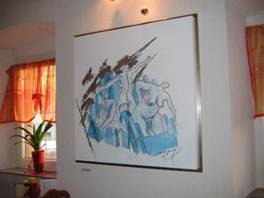 Gdč. Dagmar pa je tudi sama slikarka, zato smo se skupaj odpravili v neko gostilno, kjer trenutno razstavlja. Slika predvsem abstrakcije, najrajši pa za tehniko slikanja uporablja pastel. Pri svojem delu je zelo uspešna, saj je z eno svojih slik že gostovala v priznani galeriji v Portorožu.
