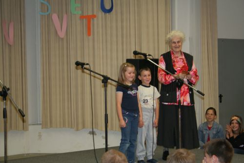 Na zaključno prireditev Bralne značke smo povabili pesnico Nežo Maurer. Njen iskren in igriv nastop nas je očaral. Sodelovali so tudi učenci 5. a razreda.