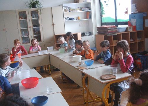 Vendar pa to ni bilo vse. Kuharice so nam pripravile tudi proseno kašo in kruh z marmelado in kislo smetano. Skratka, spoznavali smo jedi, ki niso vsak dan na naših jedilnikih, pa bi bilo dobro, če bi jih pogosteje vključevali. Za žejo smo si natočili kozarec mleka in pojedli jabolko. Uf, smo bili na koncu siti!
