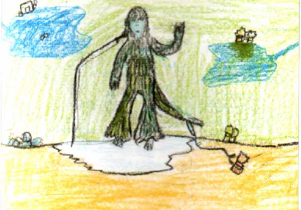 »Skrbno sem pregledal vse studence, potoke, reke in jezera. Stopil sem v vsako mlakužo. Zgrožen sem ugotovil, da so stoječe in tekoče vode odlagališče raznovrstne navlake. Ko sem se že podal na pot, pa zabredem v smrdeč mastni madež, ki mi ga ni uspelo očistiti. Kaj vse počnejo ljudje, pa pravijo, da so najbolj razvita bitja!« se še vedno ni mogel pomiriti gospod Jezerko. Odšel je z odra, za seboj pa širil tak smrad, da so vsi prisotni stiskali nosove.