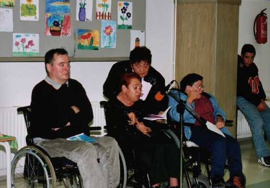 V sredo, 16. 10.2002 so se že v dopoldanskem času zbrali člani Zveze paraplegikov Slovenije, ki jih je vodil Benjamin Žnidaršič. Učenci šole so sodelovali v literarni delavnici, kjer so pesnili pesmi. V likovni delavnici so učenci spoznavali tehniko risanja z usti, saj so vsi likovniki, ki so obiskali šolo in učence, paraplegiki. Namen delavnic, ki so jih animirali paraplegiki, je bil predvsem spoznavanje ljudi s posebnimi potrebami, njihovo življenje na invalidskem vozičku. Kljub invalidnosti so učenci v dopoldanskem druženju spoznali, da so to ljudje s polno mero optimizma in volje do življenja. Nekdo izmed udeležencev delavnic je dejal, da bo to srečanje učence pripravilo na to, da ob srečanju invalida ne bo pogled usmeril drugam.