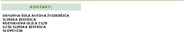 Telefon: Tajništvo: 05/711-02-60 Ravnateljica: 05/711-02-70 Fax: 05/711-02-68 E-mail: group1.ospoilbaz@guest.arnes.si |
