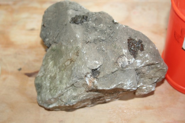 Reakcija 11% HCl z večjim vzorcem kamnine.