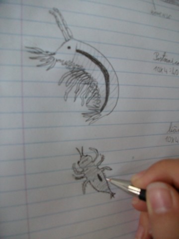 plavajo. Zadnji trije pari nožic so obrnjeni nazaj. Videti so kot repne
