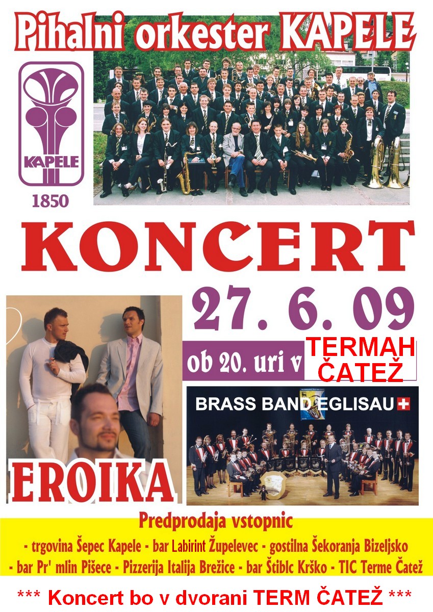 - 27. junij 2009 - EROIKA + švicarski BRASS BAND EGLISAU (video) (plakat) + Eroika s Kapelskimi godbeniki
