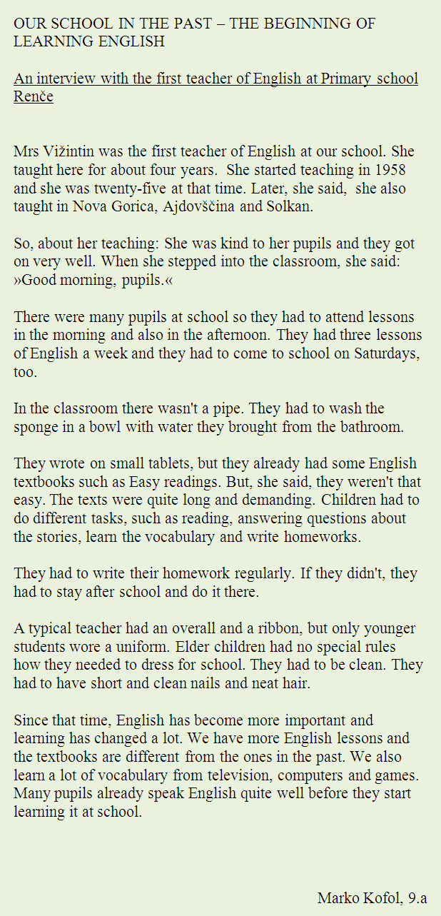 Marko Kofol - intervju z gospo Vižintin, v angleščini