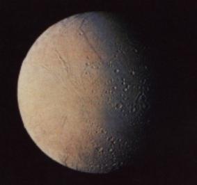 led. Temperatura na Rei je med -174 stopinj C, na sončni strani, in med -200