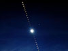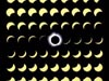 MOntaža zaporedja posnetkov sončevega mrka prikazuje potek dogodka. Posnetki