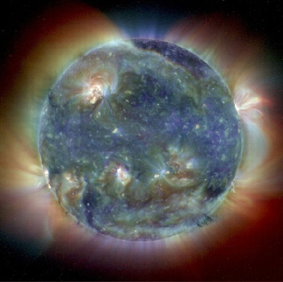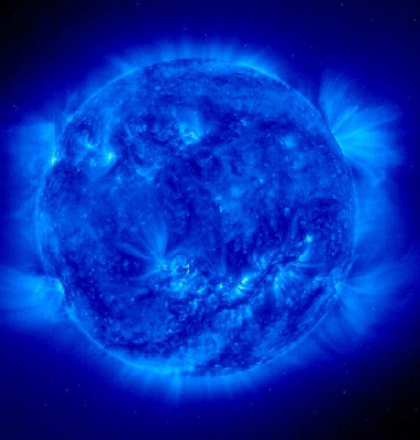 Bela področja na sliki so bolj vroča in so povezana z večjo aktivnostjo sončeve