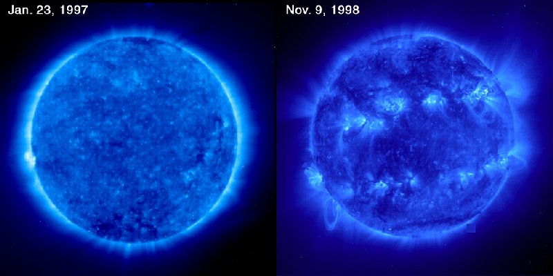 Ta posnetka Sonca pri 171A sta bila posneta v razmaku 2 let. Največja razlika
