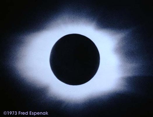 se pojavi v trenutku, ko Luna popolnoma zakrije Sonce. Vidimo pa ga lahko le