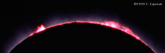 vna mestih popolnega sončevega mrka. Svetloba na robovih Lune sije med njenimi