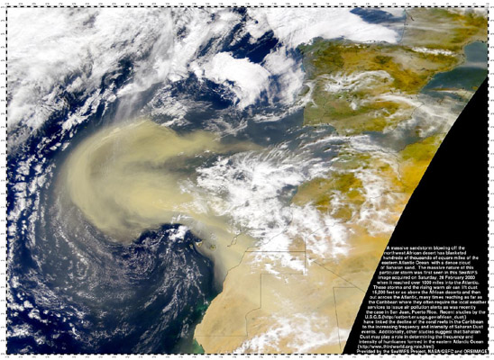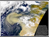 cloud of dust leaving the Sahara desert in northwest Africa. There are indications