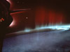 the Earth's magnetic field. The visible aurorae are dominated by green and red