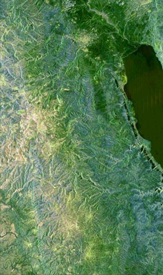 and true-color from the Landsat 7 satellite. In the foreground is the Sea of