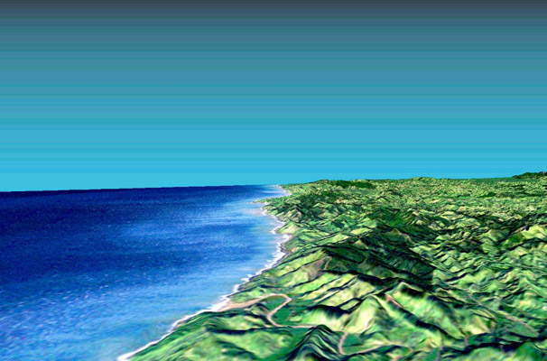 combines topographic relief data from the recent Shuttle Radar Topography Mission