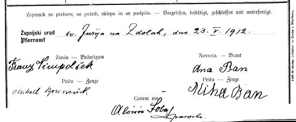 ˇ Nevestin oče Franc B. je krstni boter ženina.