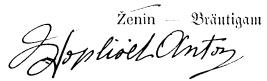 Podpise najdemo predvsem na koncu zapisnika. Podpisani so: ženin in nevesta, obe priči in duhovnik. Očetovsko dovoljenje za poroko je vpisano in podpisano v posebni rubriki. V obravnavanem zapisniku so bile razmeroma redke nepismene osebe (križ namesto podpisa). Ženitni zapisnik se s podpisi zaključuje takole: